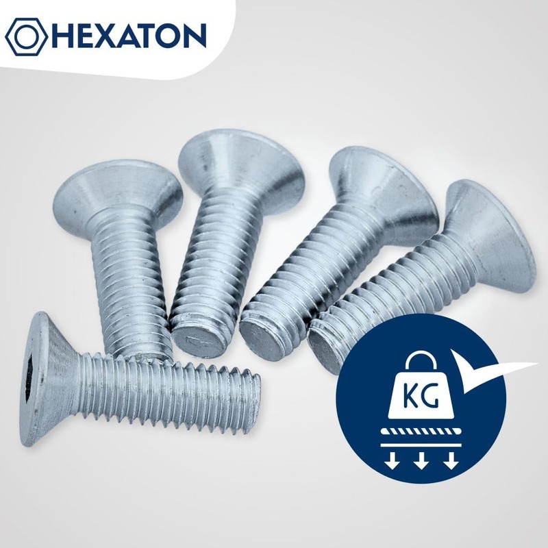 HEXATON Countersunk Hex Socket Screws - M6 x 12mm - Pack of 100 - Full Thread - Zinc Plated Steel - Cylindrical Machine Screws