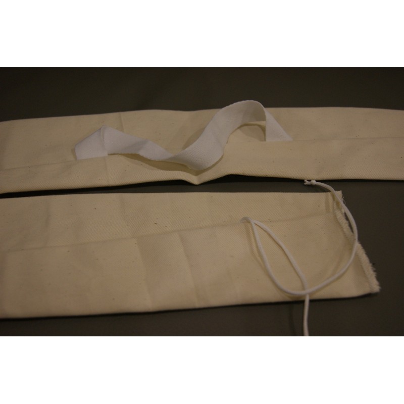 white traditional longbow bag with handle and fold over - tie end will fit most flatbows/longbows and takedown bows88" overall length