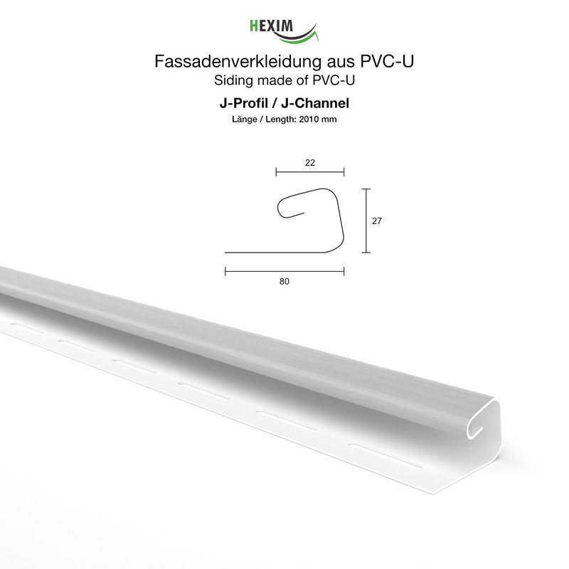 HEXIM Siding Facade Panels, Outdoor Facade Cladding, Weatherproof, Plastic Panels, PVC-U Cladding, Exterior Wall, House Cladding, UV-Resistant - (J Profile Grey)