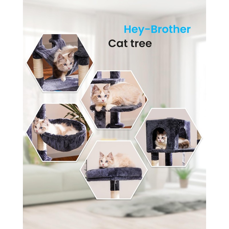 Hey-brother Cat Tree with Large Hammock, Multi-Level Cat Tower for Indoor Cats, Cat Condo with Sisal-Covered Scratching Posts and Top Perch, Smoky Gray MPJ050G