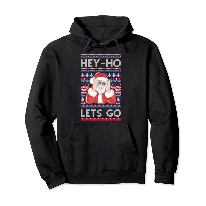 Hey Ho Lets Go Ugly Christmas Santa Pullover Hoodie, black