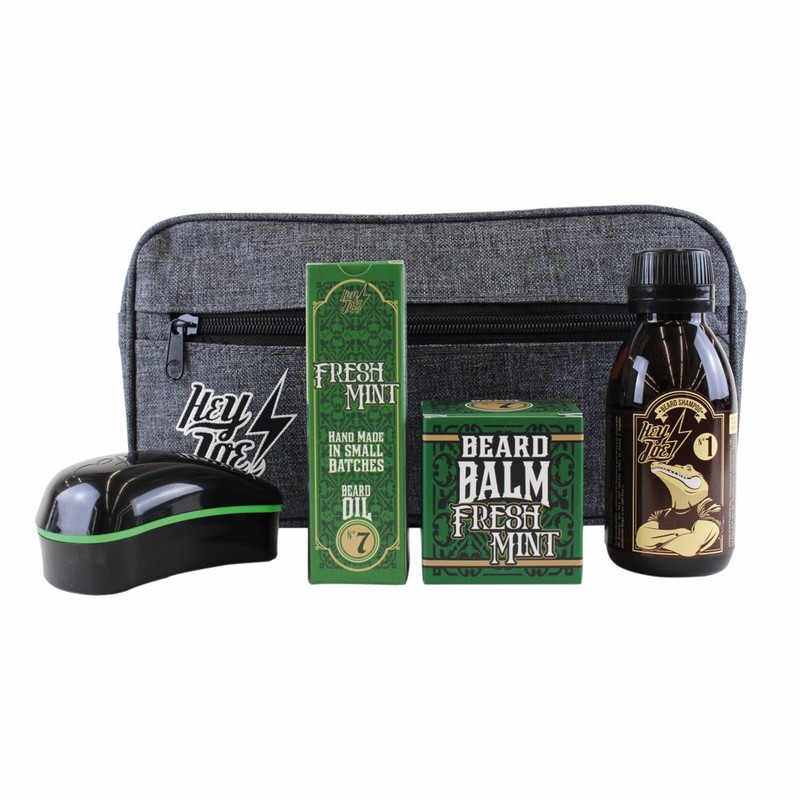• HEY JOE! Men's Beard Care Kit with Oil, Balm, Shampoo and Detangling Brush | Gift Toiletry Bag Included: Beard Oil 30ml + Beard Balm 60ml + Beard Shampoo 120ml + Beard Detangling Brush
