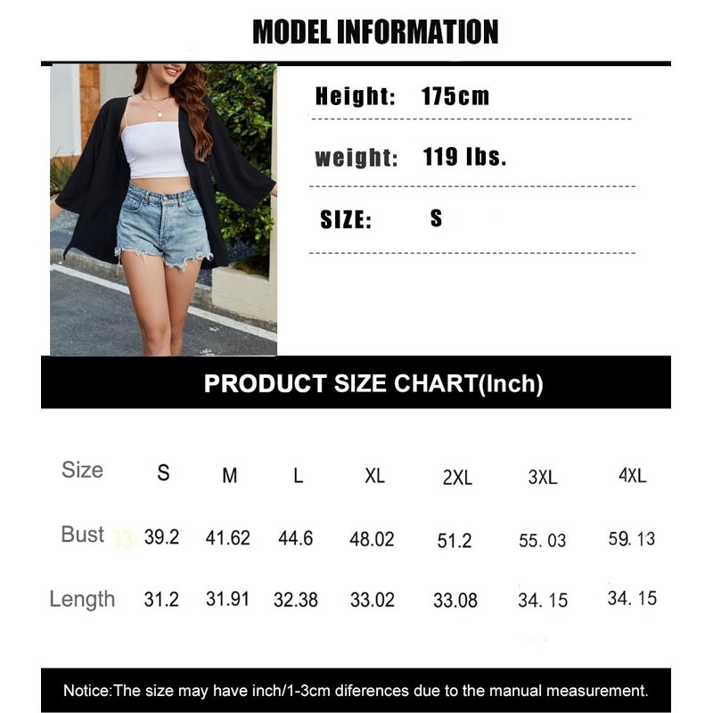 - Sheer chiffon women's kimono cardigan, long sleeve design, loose and unique cut, easy to dress up or down, always show women's romance and confidence
