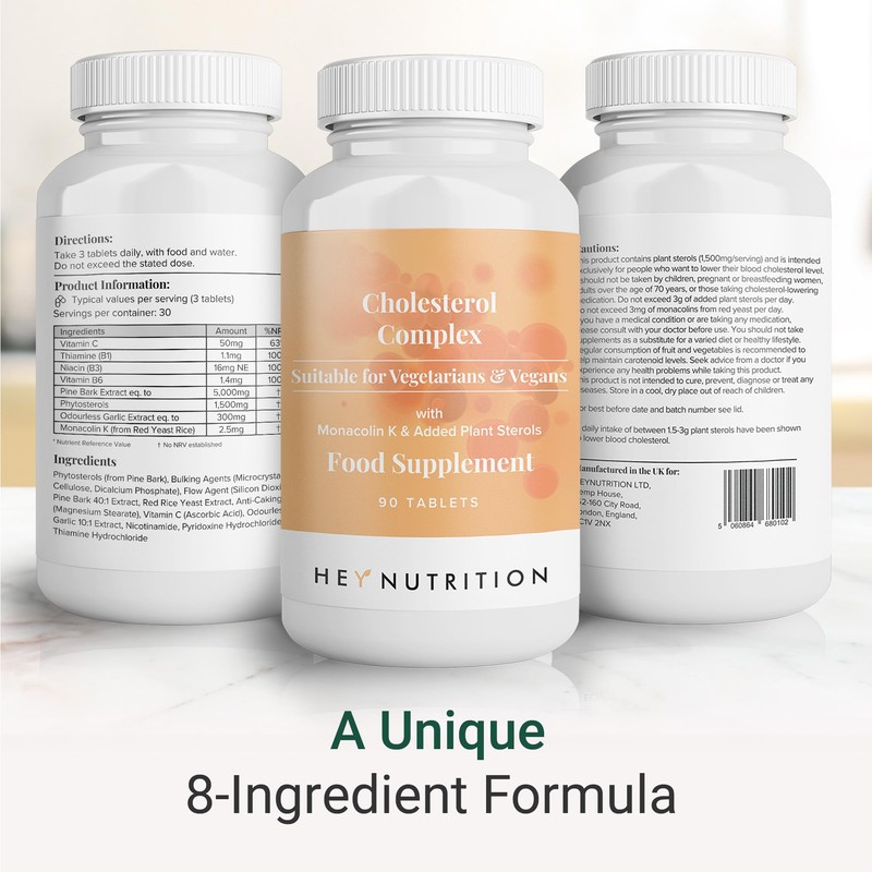 Hey Nutrition Hey Nutrition Cholesterol Complex Supplement - with Plant Sterols & Pine Bark Extract - Advanced Cholesterol Support - 90 Tablets/30 Servings - Non-GMO, Vegan