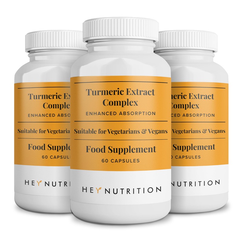 Hey Nutrition Hey Nutrition Turmeric Extract Complex - Vitamin D3 & C, Black Pepper Extract - Support Muscle & Joint Relief - Maximum Potency & Enhanced Absorption - UK Manufactured - 3 Pack - 180 Vegan Capsules