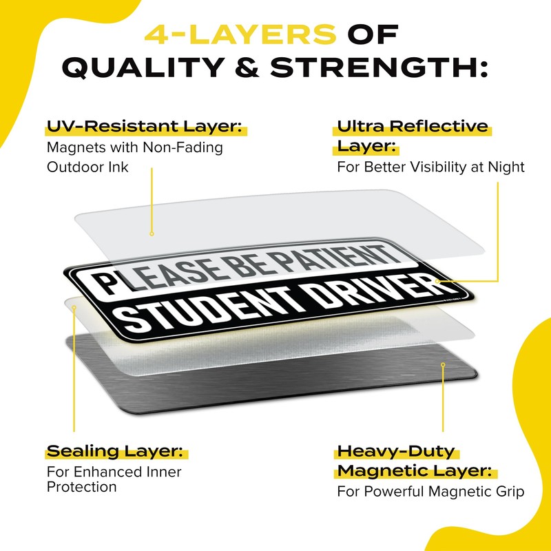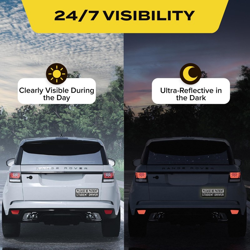 - ENHANCED NIGHT VISIBILITY: Made with highly reflective, weather-resistant materials, our student driver magnets ensure you're seen at night and in poor weather conditions, boosting safety for new drivers.