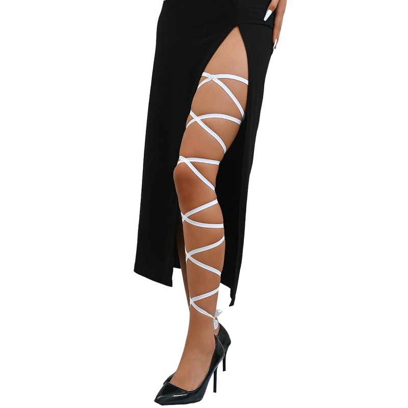 Hey Song Leg Wrap for Women Elastic Garter Rave Dancing Music Festivals Costume for Women Non-Slip Strap Concert Accessories (White)