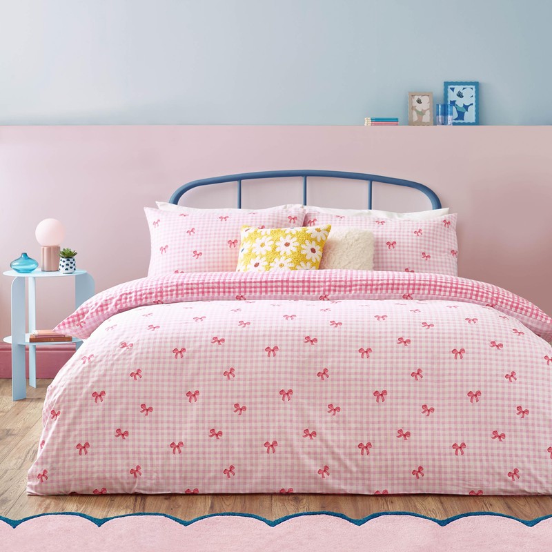 Heya Home Gingham Bows Printed Duvet Set - Pink - Single