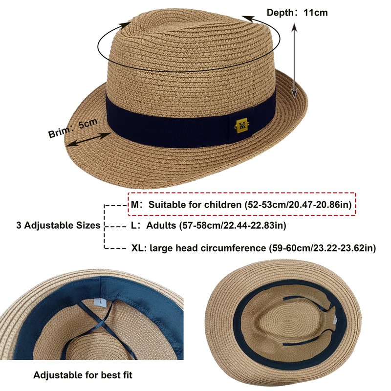 - 【3 Sizes + Adjustable Strap】 The Beach Straw Hats Head Cricumference have two size: M: (52-53cm/20.47-20.86in) circumference fit for 2-7T little boys girls,L: adults (57-58cm/22.44-22.83in), XL: large head circumference (59-60cm/23.22-23.62in) 。Also inside the hat is an adjustable strap inside of the hat band so it allows you to adjust it to loosen or to tighten it for stable wearing and comfortable fit