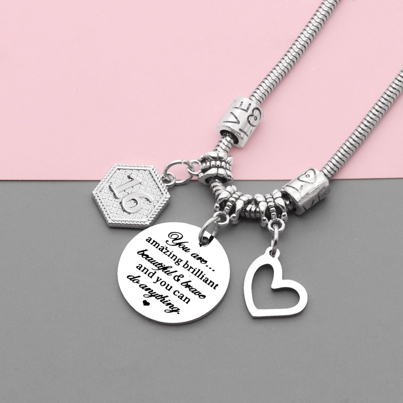 - đź’–Birthday gifts for girls: 16 year old birthday bracelet engraved with "You are amazing brillian beautifult & brave and you can do anything". Fabulous and inspirational birthday present jewelry for 16th birthday celebration milestone in her life.
