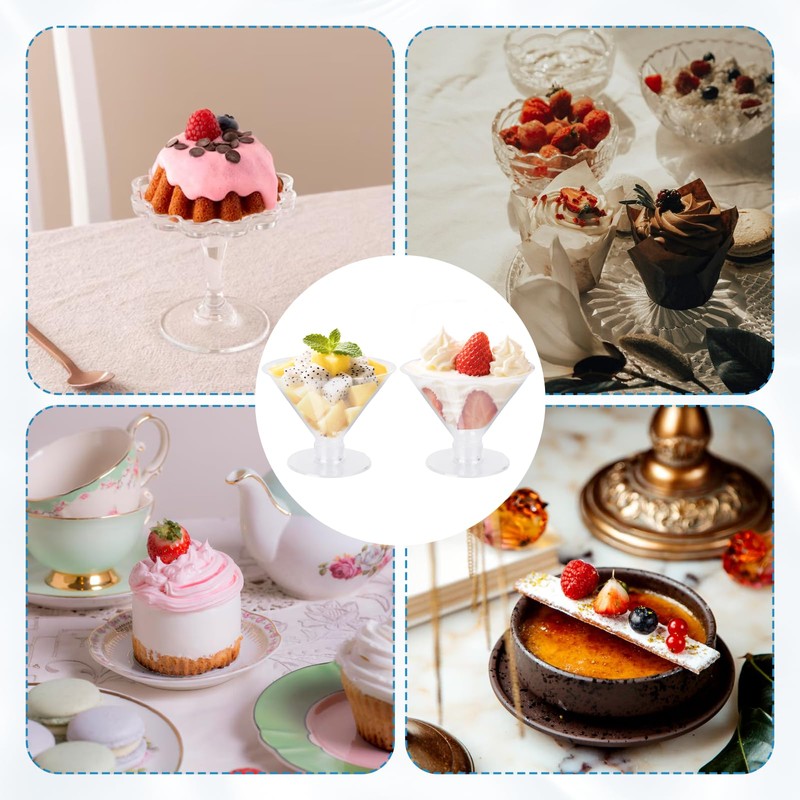 2.Each glass is ideal for serving cocktails,champagne,ice cream,parfaits,pudding or even bite-sized appetizers.Includes 100 cocktail sticks to add flair to hors d’oeuvres or fruit skewers making them a must-have for weddings,birthdays,baby showers, buffets or holiday parties