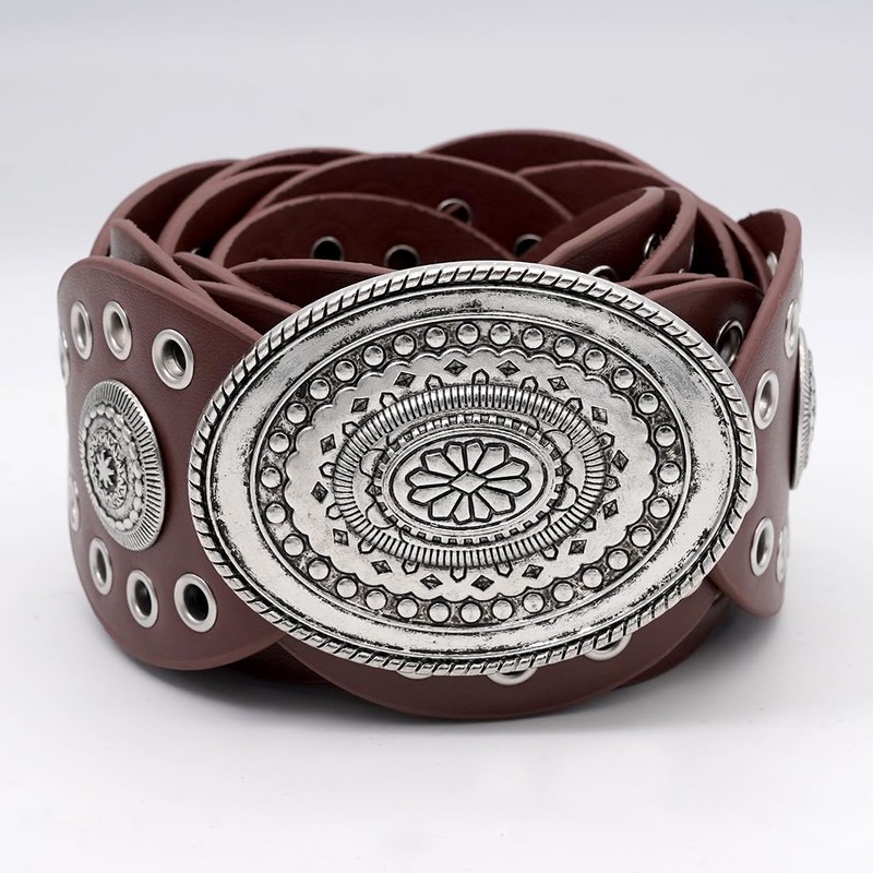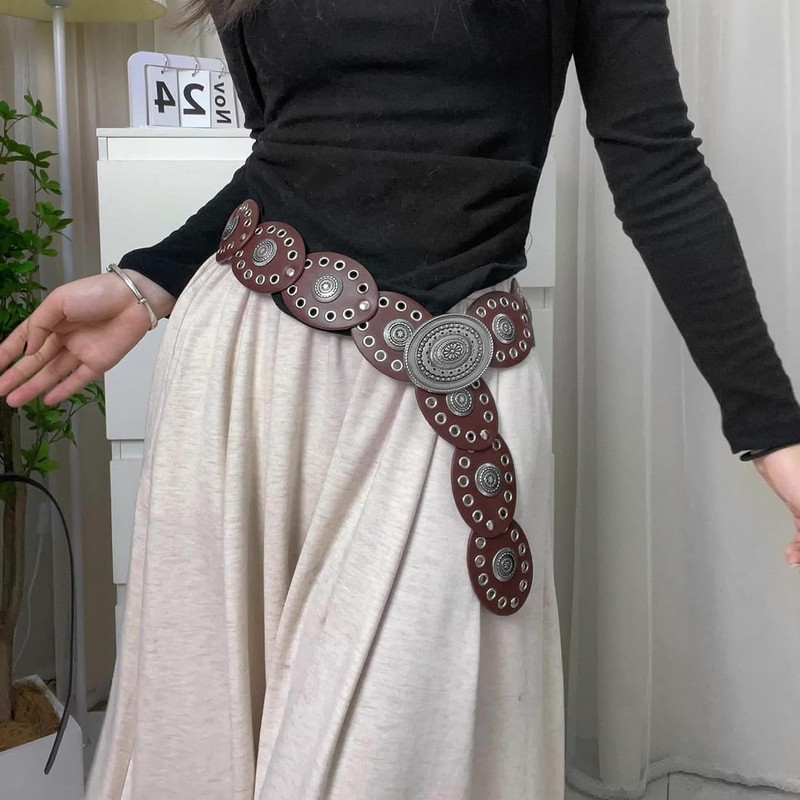 - Design: This women's oval disc belt features vintage cowboy western style design elements, giving it a classic yet stylish feel. Easy to combine, perfect with dresses, skirts, sweaters, down jackets or other clothes for all occasions in the four seasons.