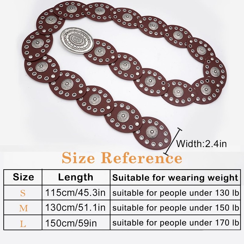 Heyjoin Oval Disc Belt for Women Wide Leather Concho Belts Boho Western Disc Link (Oval Silver Brown-M)