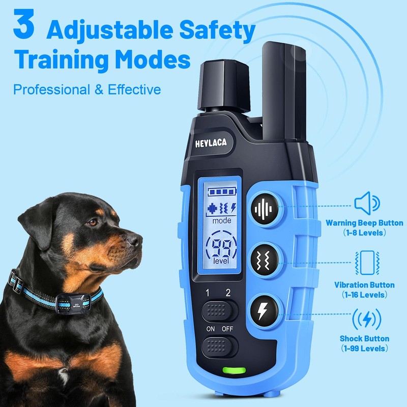 Heylaca Dog Training Collar with Remote 3300Ft Dog Shock Collar for 5-120lbs Small/Medium/Large Dogs Rechargeable IP67 Waterproof e Collar with Levels of 8-Beep, 16-Vibration, 99-Safe Shock (Blue)