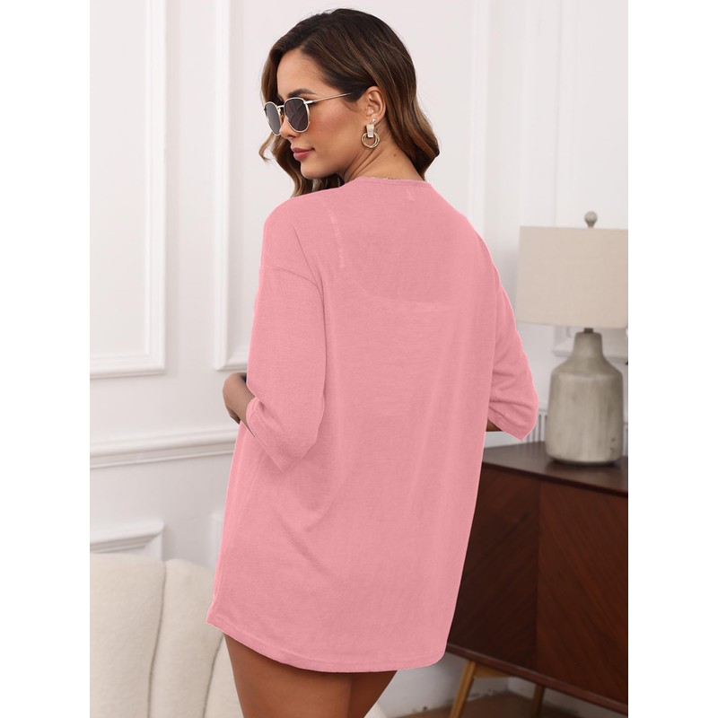 Heymoments Cardigan for Women Pink Small Draped 3/4 Sleeve Open-Front Lightweight Casual Soft Drape Summer Fall Kimonos Cardigans