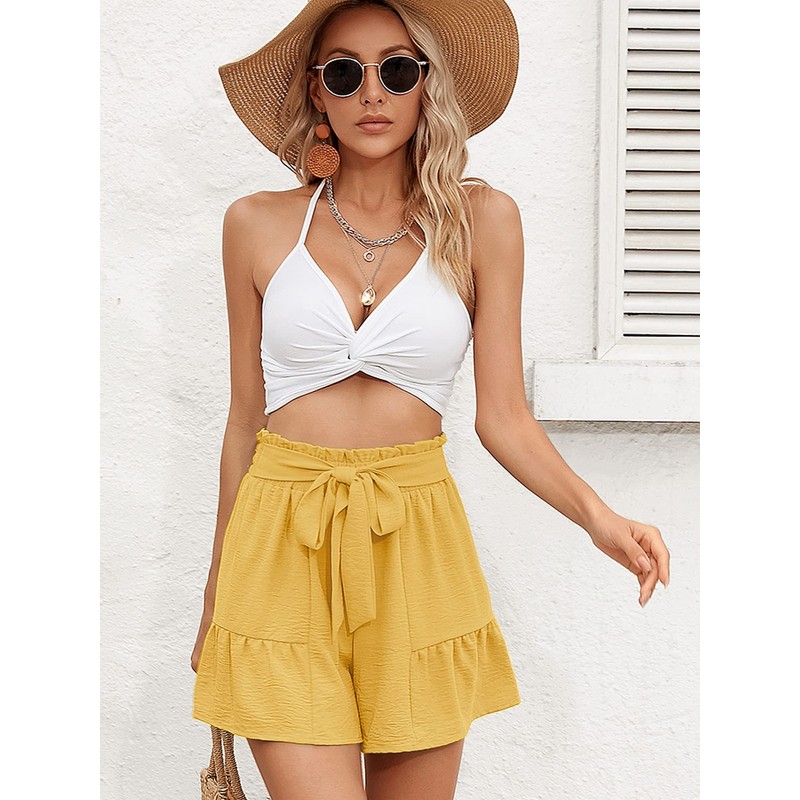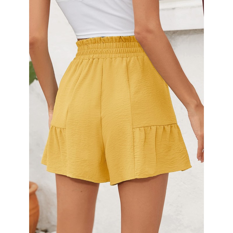 - Features: Summer casual shorts feature a flattering self-tie knot at the waist that cinches in your waistline and creates a more defined silhouette. The ruffled edge helps to create a flattering fit that accentuates your curves and elongates your legs.
