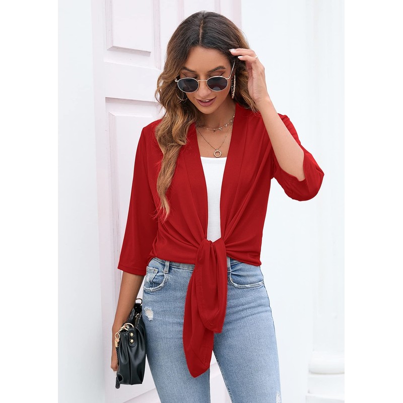 Heymoments Women's Cardigan Lightweight Draped Open Front 3/4 Sleeve Casual Flowy Cardigan Crimson XX-Large