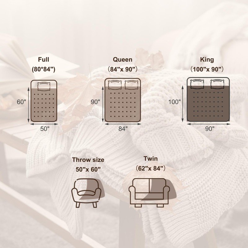 - 【Deluxe Flannel & Soft Experience】220gsm Double-sided flannel. Deluxe soft flannel is skin-friendly and greatly facilitates heat penetration and preservation. This queen size heated blanket can be breathable and keep the warmth at the same time during cold days. The heating wire is so thin that you can hardly feel its presence during use.