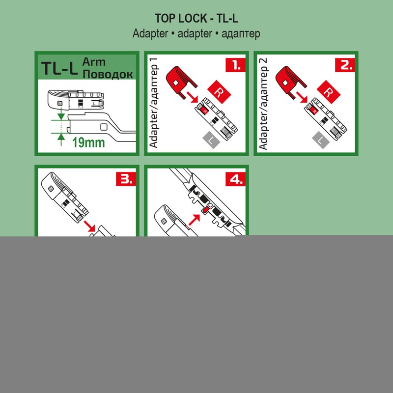 - Driver side: 650 mm (26 inches) passenger side: 480 mm (19 inches) - special adapter: only for top lock (TL) arm