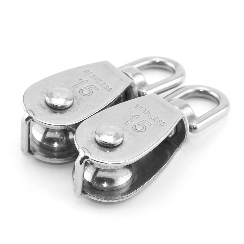 Heyous 2pcs M15 Stainless Steel Single Pulley Block Heavy Duty Traction Wheel Swivel Hook Lifting DIY Steel Wire Rope Pulley Metal Sheave