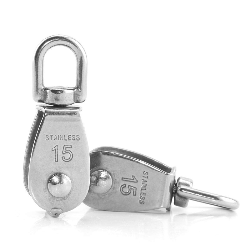 Heyous 2pcs M15 Stainless Steel Single Pulley Block Heavy Duty Traction Wheel Swivel Hook Lifting DIY Steel Wire Rope Pulley Metal Sheave