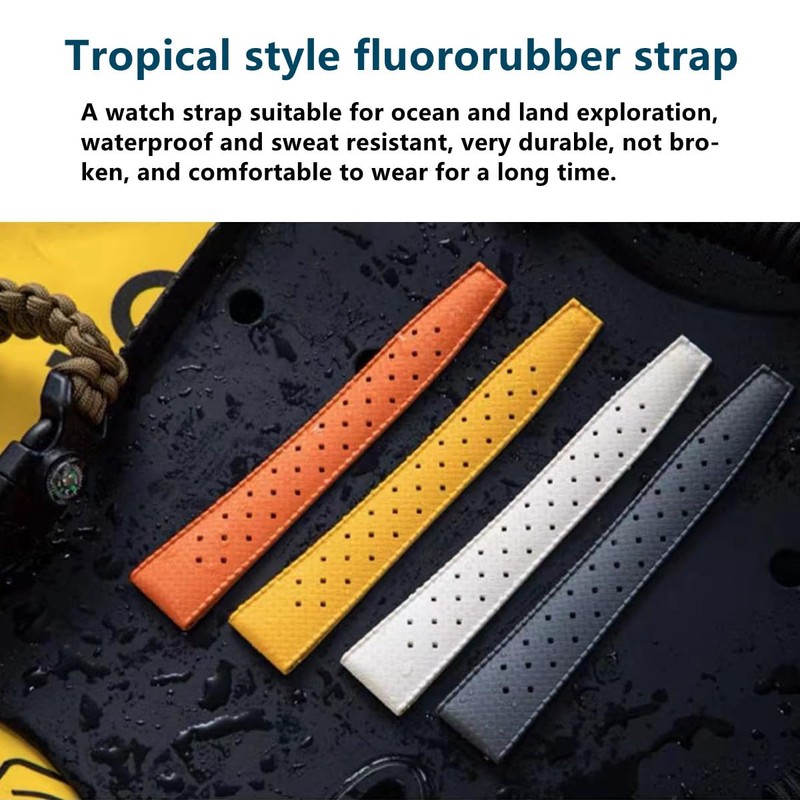HEYOZURY FKM Rubber Watch Bands Quick Release Tropical Style Fluororubber 18mm 20mm 22mm Replacement Soft Breathable Durable FKM Rubber Sport Diving Watchbands Straps for Omega X Swatch X Blancpain