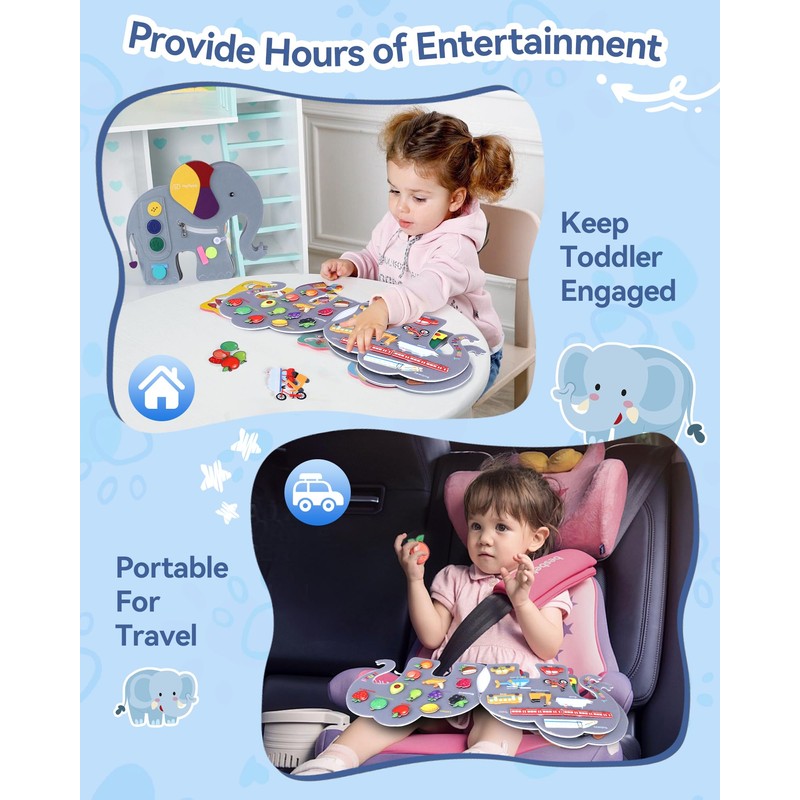 - Perfect Gift Idea: With its unique cute elephant shape and various learning activities, our busy board can easily attract children's attention. It is a perfect idea for girls and boys as a Birthday, Easter and Christmas gift.