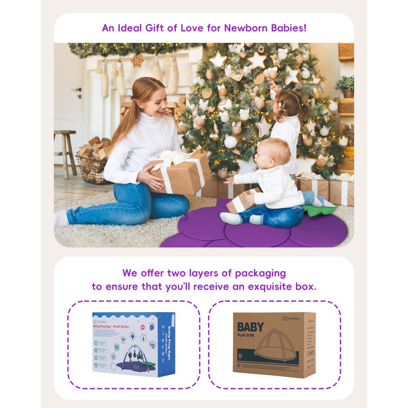 - Baby Gym Mat with Sunshade: This grape-shaped tummy time mat features a semi-open detachable sunshade with Velcro, providing shade from bright sunlight while ensuring airflow. When your baby gets tired, they can rest in their cozy play space, letting busy moms free up their hands.