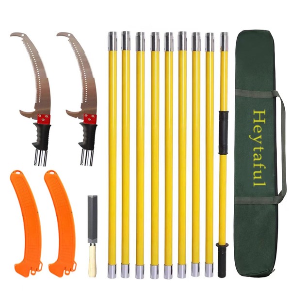 - Easy to Carry: The kit comes with a sturdy nylon canvas bag where you can store a full set of poles and manual branches pruner and saw blades for easy carrying; It's thick and sturdy, you can take it out with peace of mind; The saw blade also comes with a cover that won't scratch the package or your fingers to ensure your safety