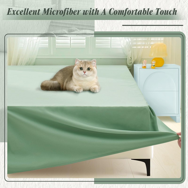 Heywaller 14 Inch Drop Bed Skirt Full Size, Microfiber Tailored Style Bedskirt Elegant Pleated Design Platform Full Bed Skirt, Sage Green