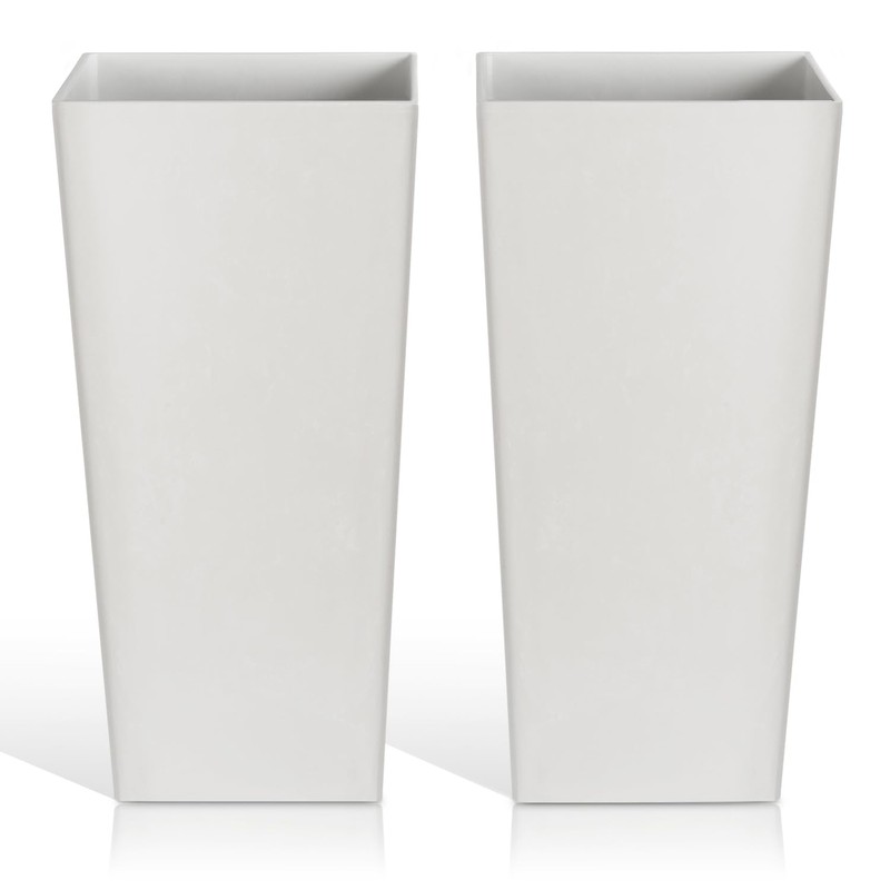 Heyzier Tall Planter Outdoor Indoor, Large Resin Plant Pots for Trees Flowers (White, 27.5 inch - 2 Pack)