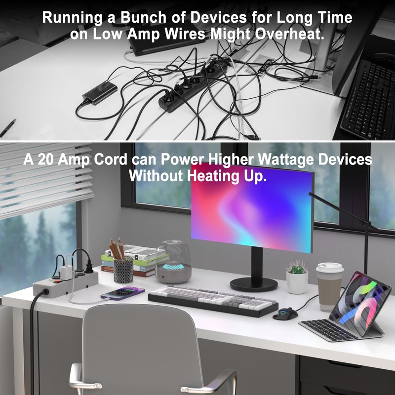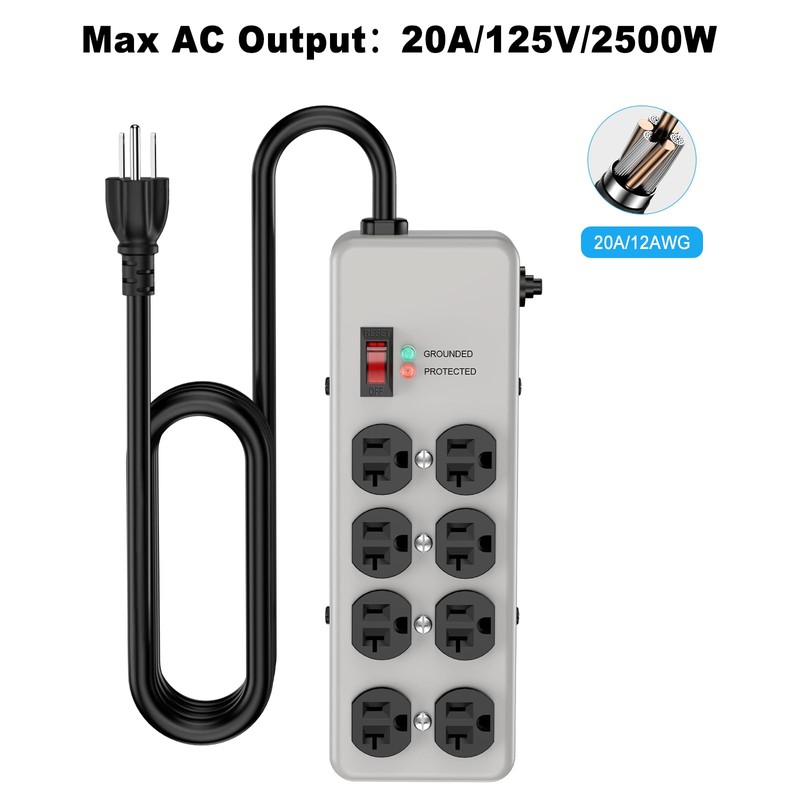 - Powerful Performance: This power strip comes equipped with 8 AC outlets, capable of delivering a high current of 20 Amp/125V/2500W. It includes a 6ft heavy-duty extension cord with a 5-20P plug, ensuring a reliable power supply for various devices.