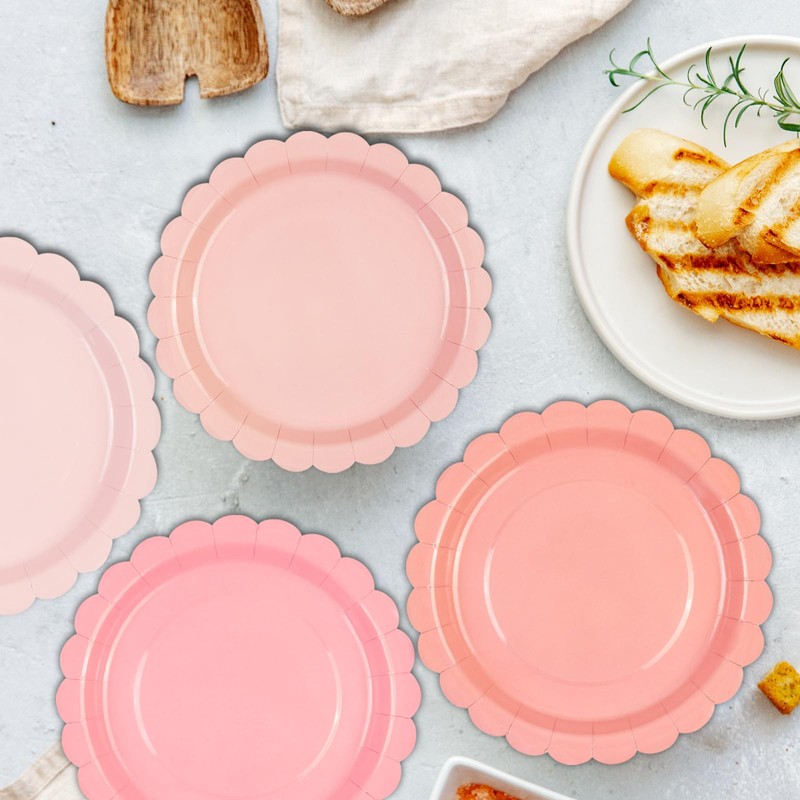 - 【Gradient Color Design】Choose from 4 stunning colors in the pink collection to match your personalized occasion. Flower edges Add an elegant and modern atmosphere to any party. Perfect choice for theme parties.Plates are made of sustainable, Paper Material, are eco-friendly,not easy to tear,and easy to clean.