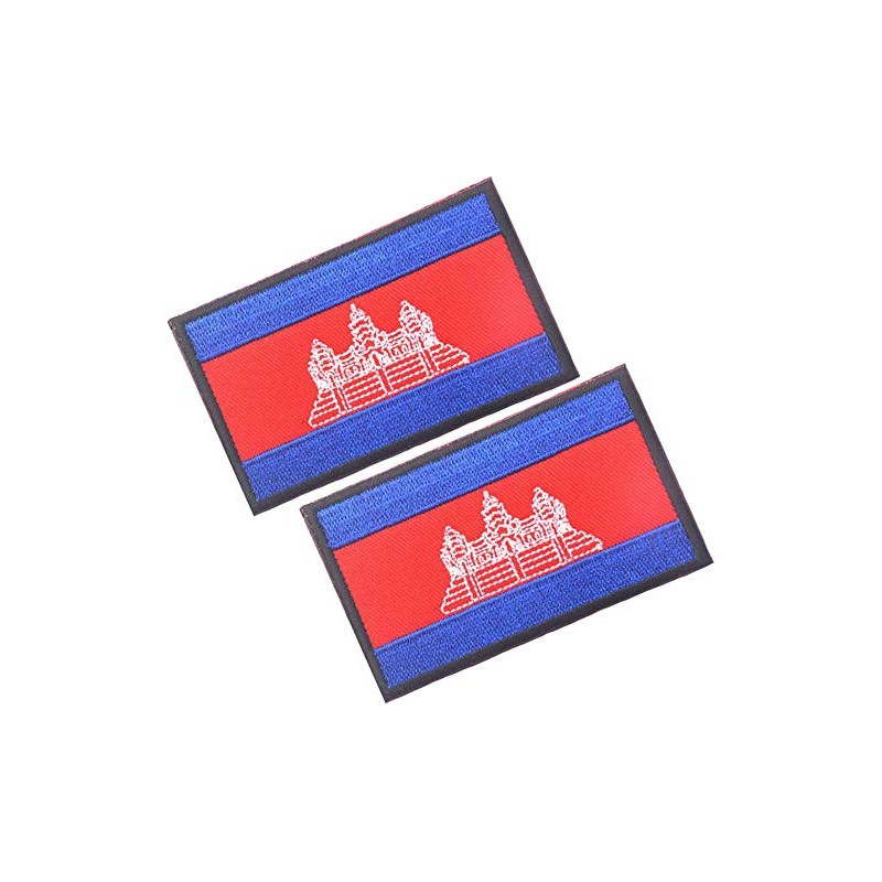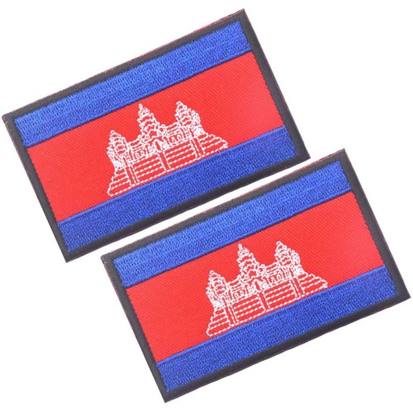 HFDA 2 Piece Different Country Flags Patch - Tactical Combat Military Hook and Loop Badge Embroidered Morale Patch (Cambodia)