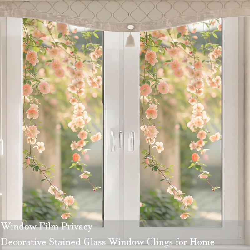 -These window films feature a beautiful flowers pattern that adds a natural freshness to any room,privacy window film blurs what you're seeing, allowing you to enjoy quiet moments at home while still letting sunlight in to create a warm and bright living space.