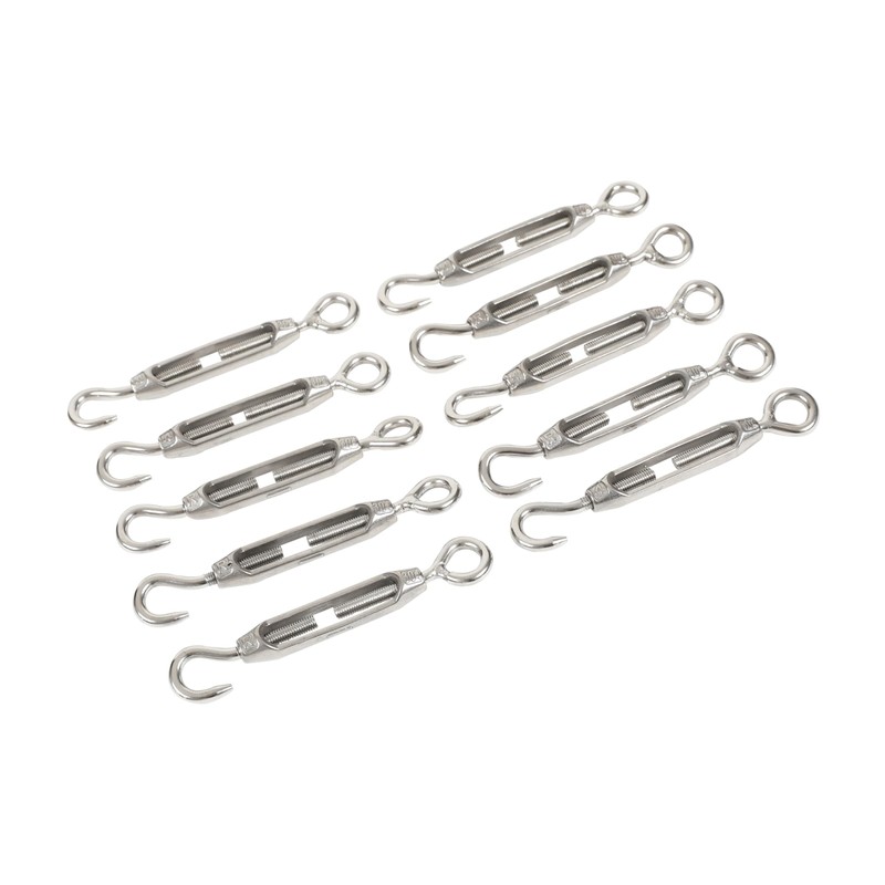 HFS(R) 10pcs 304 Stainless Steel Turnbuckle Hook Tensioner Wire Rope Fixing Wire Buckle Hardware Rust Proof Weather Resistant Strong M4