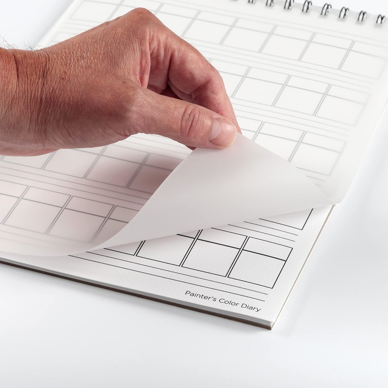 - Oil & Acrylic Color Diart: Perfect for oil and acrylic paint, 40 outlined swatch boxes on each page, 136 lb. (290gsm) canvas textured paper with sizing, 10 removable pages with glassine interleaving, each swatch outline measures 1"x1.5", and pages measure 9x12" from the spiral binding
