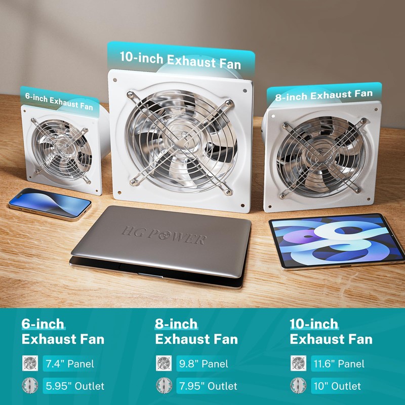 - Powerful Ventilation Capacity: Equipped with a potent motor and large 10 inch blades, the fan efficiently eliminates smoke, humidity, and odors in various spaces