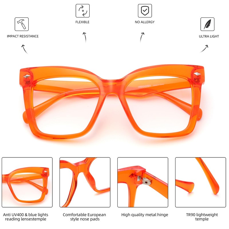 Made with premium materials, this stylish pair of square full-frame glasses is suitable for all-day comfort. This chic pair of eyeglasses feature durable burnt umber rims as well as translucent temples. It is a perfect ornament that makes you look both stylish and elegant. It is nice for ladies to wear it every day.