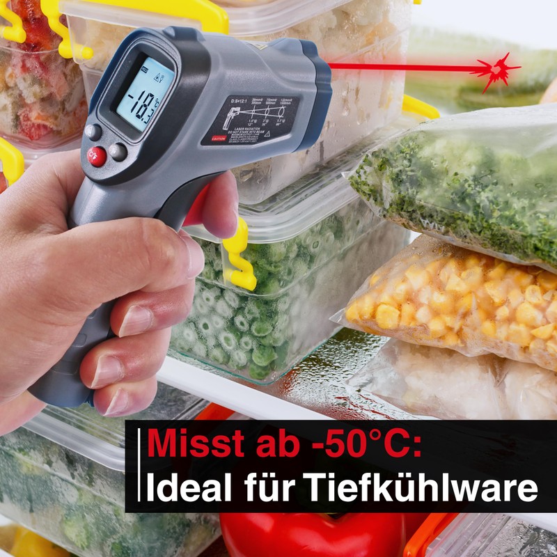 - Large measuring range: -50 °C to 400 °C for most applications from crafts, hobby, industry, service and car maintenance, but also cooking, baking or fridge and freezer