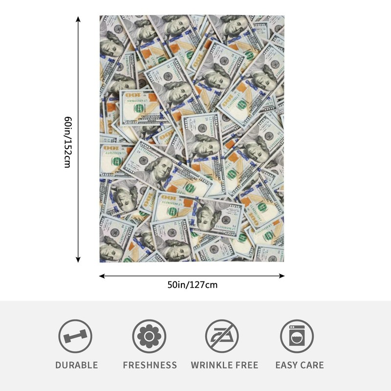 HGOD DESIGNS Dollar Pattern Blanket Smooth Soft Hundred Dollar Bill Print Throw Blanket for Sofa Chair Bed Office 50"x60"