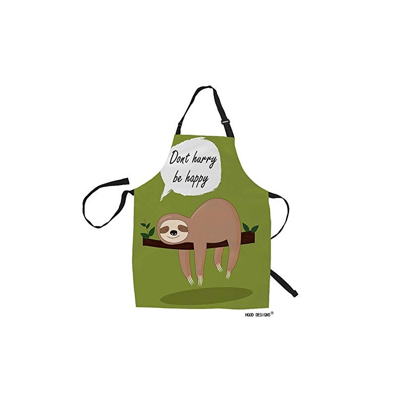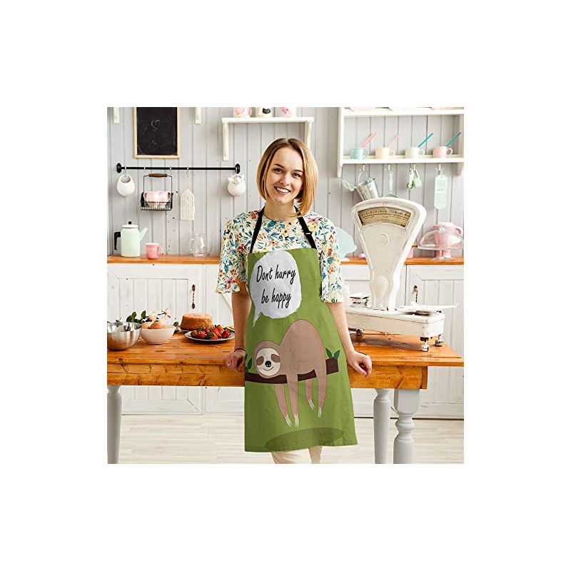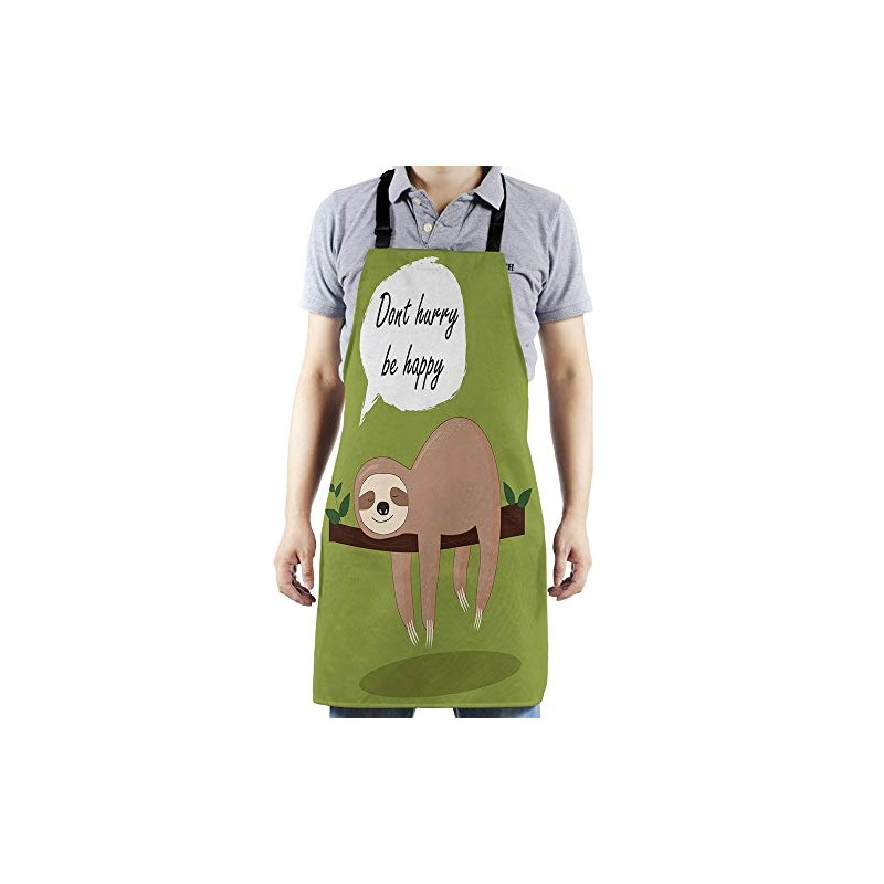 HGOD DESIGNS Sloth Kitchen Apron,Cartoon Cute Lazy Sloth With The Speech Bubble In The Branch Bib Aprons For Home Cooking Gardening Adjustable Neck for Women men,Adult Size