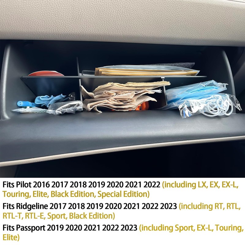 • Pilot - HGWEI glove box organizer fit Pilot 2016, 2017, 2018 2019, 2020, 2021, 2022, LX, EX, EX-L, Touring, Elite, Black Edition, Special Edition.