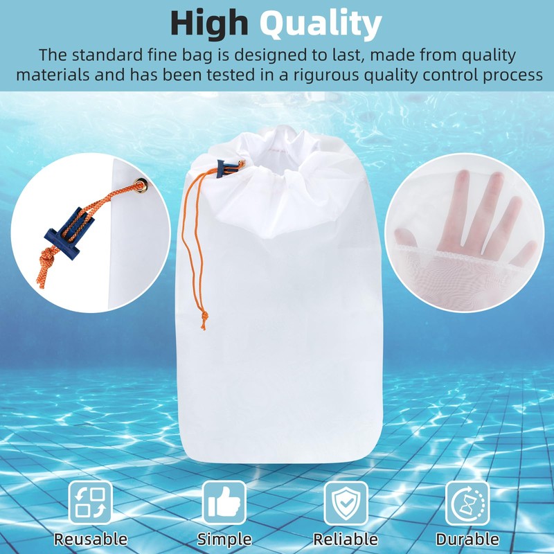 - Large capacity mesh bags use their tiny holes to clean most of the debris and leaves in the pool while trapping small particles in the net, reusable materials allow the mesh bag to be reused and flushed with fresh water after each use.