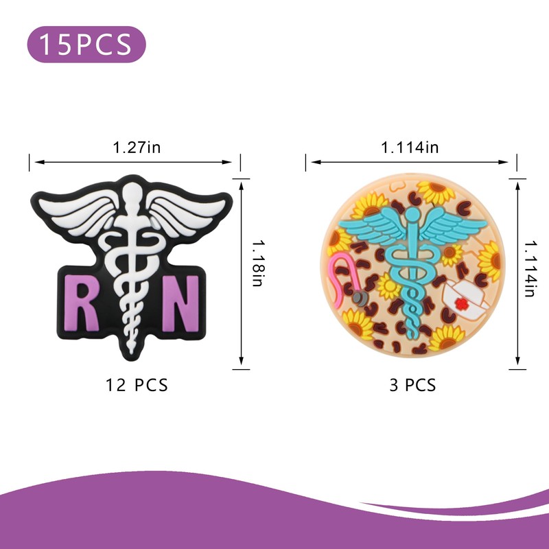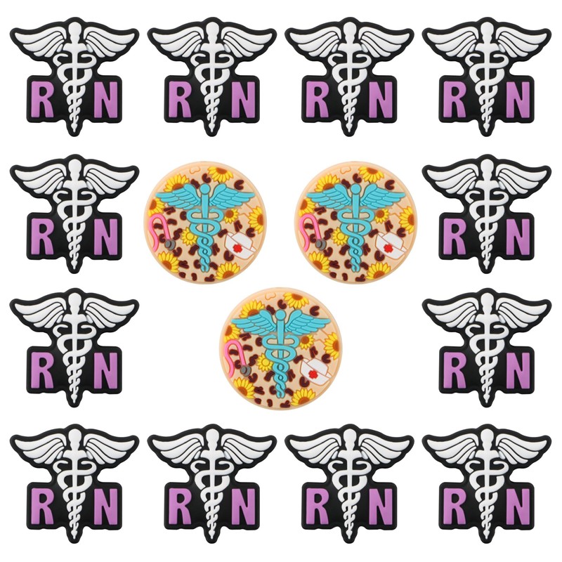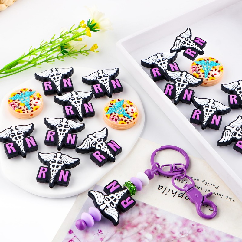 HHCFAST 15Pcs Silicone Focal Beads for Keychain Making and Pens, Bulk Character Silicone Beads for Necklace and Bracelets(Registered Nurse)