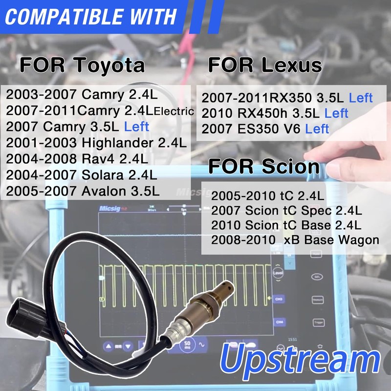 - Fitment: Upstream oxygen sensor compatible with 2003-2011 Toyota Camry 2.4L, 2007 Camry 3.5L, 01-03 Highlander 2.4L, 04-08 Rav4 2.4L, 04-07 Solara 2.4L, 05-07Avalon 3.5L Left; Scion TC 2005-2010 2.4L, 08-10 XB 2.4L; Lexus 2007 ES350 3.5L Left, 07 10-11 RX350 3.5L Left, 2010 RX450H 3.5L V6 Left.