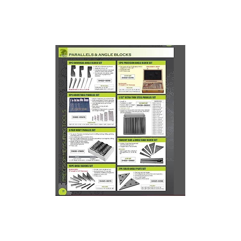 1/4 X 3/4 X 6 Parallel ~ Made from fine quality tool steel stress relieved against distortion. ~ Precision ground and hardened. ~ 12 Holes in each parallel are designed for easier handling and set-ups. ~ Tolerance is parallel to 0.0003 on 2 sides, top and bottom. ~ Dimensions are within .0001 allowance. ~ Sold by the pair.