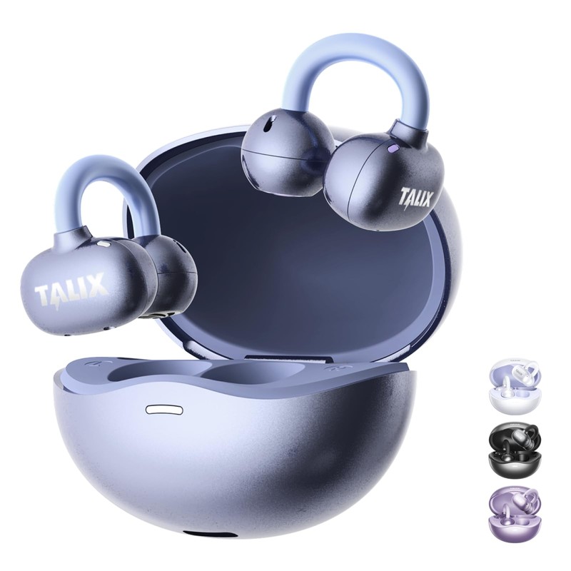 Unlock Unparalleled Listening Freedom! Introducing the TALIX Ultra Open Earbud X6 (2025 Model) – the revolutionary open-ear, air conduction headphones designed for those who refuse to compromise. Forget bulky earbuds! Experience music, calls, and podcasts like never before, safely staying aware of your surroundings while enjoying crystal-clear sound. Why You'll Love Your TALIX X6: Ultra-Lightweight & All-Day Comfort: Feel like you're wearing nothing at all! At an incredibly light 0.1 oz (4.8g) per earbud, the ergonomic ear cuff design melts into your ears. Made with super-soft silicone, it applies zero pressure, making it perfect for hours of comfortable wear, whether you're working, commuting, or relaxing. Rock-Solid Secure Fit: Never worry about earbuds falling out again! The flexible yet durable ear clip provides an exceptionally stable and secure fit. Shake, run, jump, or work out intensely – your TALIX X6 stays firmly locked in place. Durable construction ensures they last. Stay Aware, Stay Safe with Open-Ear Design: Our advanced Air Sensory Technology delivers rich audio directly to your ears without blocking your ear canal. Crucially hear ambient sounds like traffic, conversations, or announcements. Enjoy your music confidently and safely during runs, cycling, workouts, or while working in busy environments. Massive Battery Life – Music All Day & Night: Power through your longest days. A single charge gives you up to 6.5 hours of continuous playtime per earbud. The sleek, spaceship-inspired charging case provides multiple additional charges, extending total playtime to an impressive 40 hours. Using both earbuds? Enjoy up to 26 hours of total use with the case. Less charging, more listening! Sleek, Fashionable Design: Make a statement. The charging case boasts a premium matte finish and a streamlined, spaceship-inspired silhouette that exudes modern sophistication. Choose your style from three stunning colors: Cosmic Purple, Midnight Black, or Ocean Blue. Upgrade Your Audio Experience Safely & Comfortably. Get Your TALIX Ultra Open Earbud X6 (2025) Today!