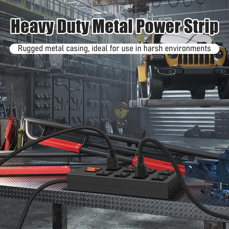 HHSOET Metal Magnetic Power Strip, 8 Outlet Mountable Socket, Wall Mount Heavy Duty Surge Protector, Catering for Your Every Need, Gaming Table Outlet with 15 FT Power Cord.(Black)