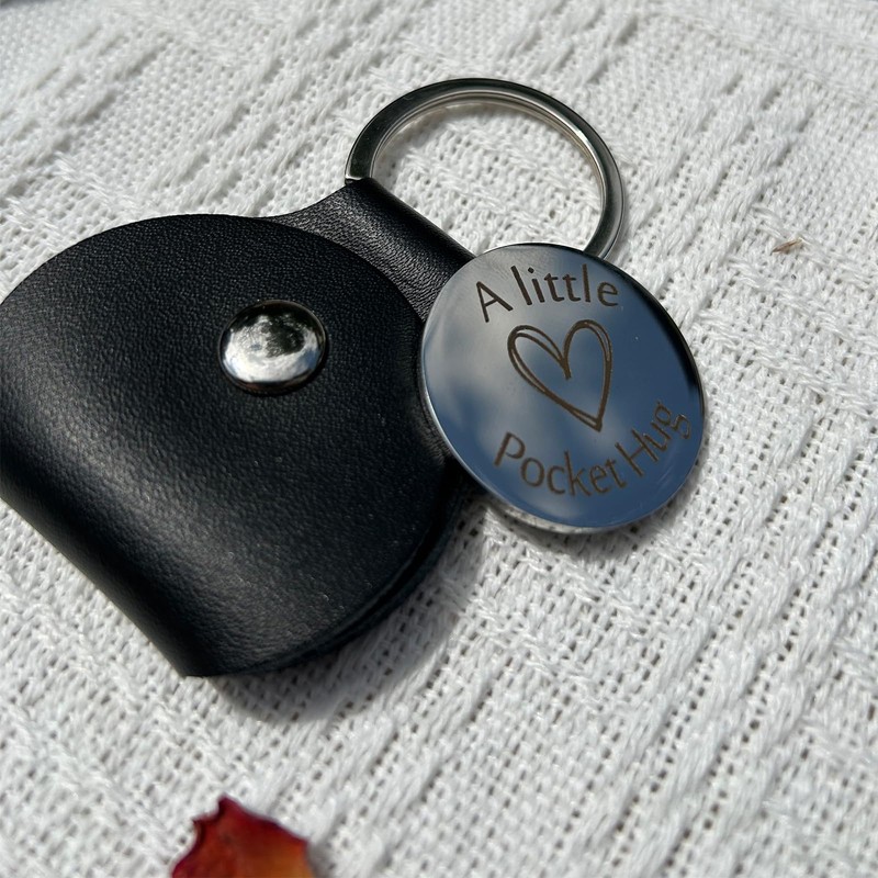 HHXFLY Pocket Hug,Inspiring Coin and Leather Keychain with Engraved Motivational Message,Long Distance Relationship Keepsake Stainless Steel Double Sided Miss You Gift